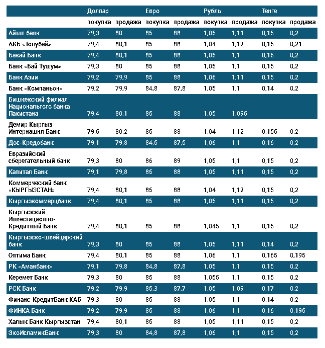 Курс доллара в коммерческих банках Кыргызстана на 20 апреля