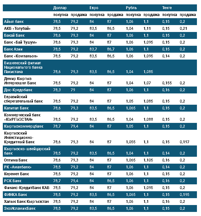 Курс доллара в коммерческих банках Кыргызстана на 30 апреля