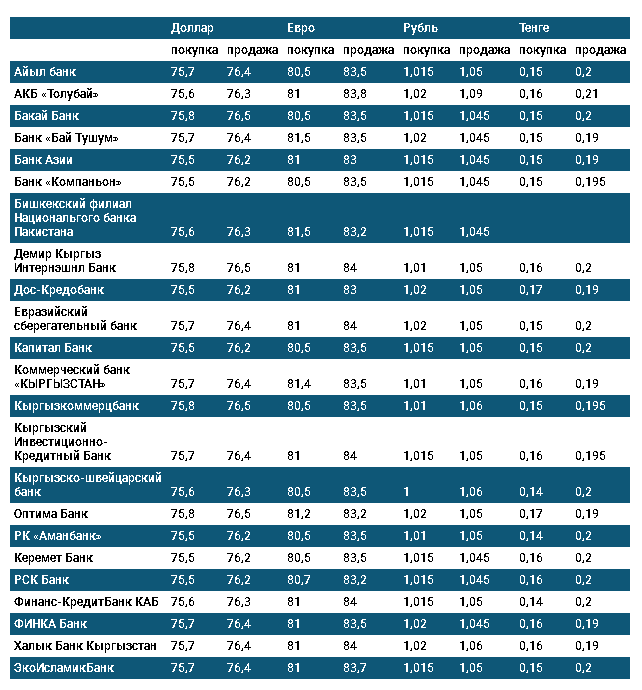 Курс доллара в коммерческих банках Кыргызстана на 14 мая