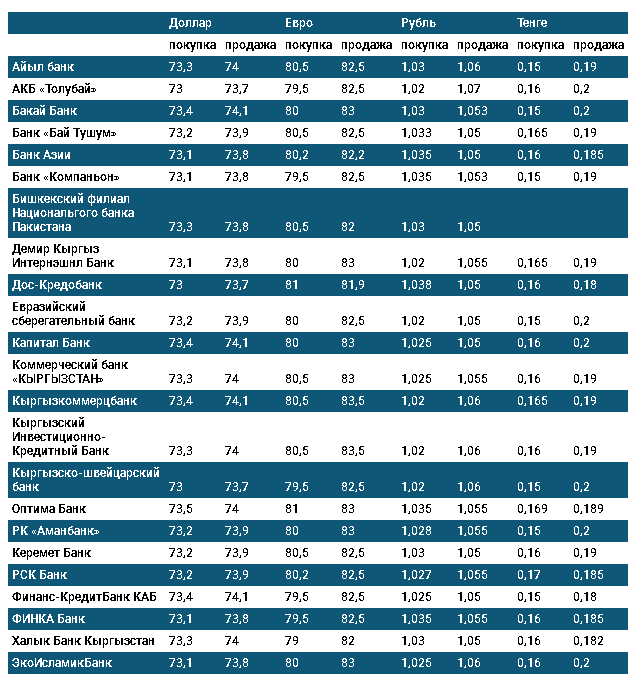 Курс доллара в коммерческих банках Кыргызстана на 30 мая