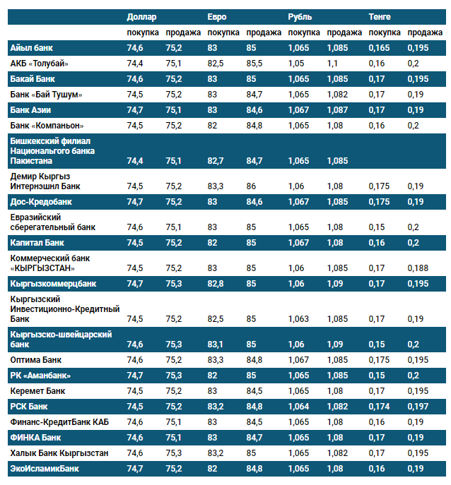 Курс доллара в коммерческих банках Кыргызстана на 19 июня