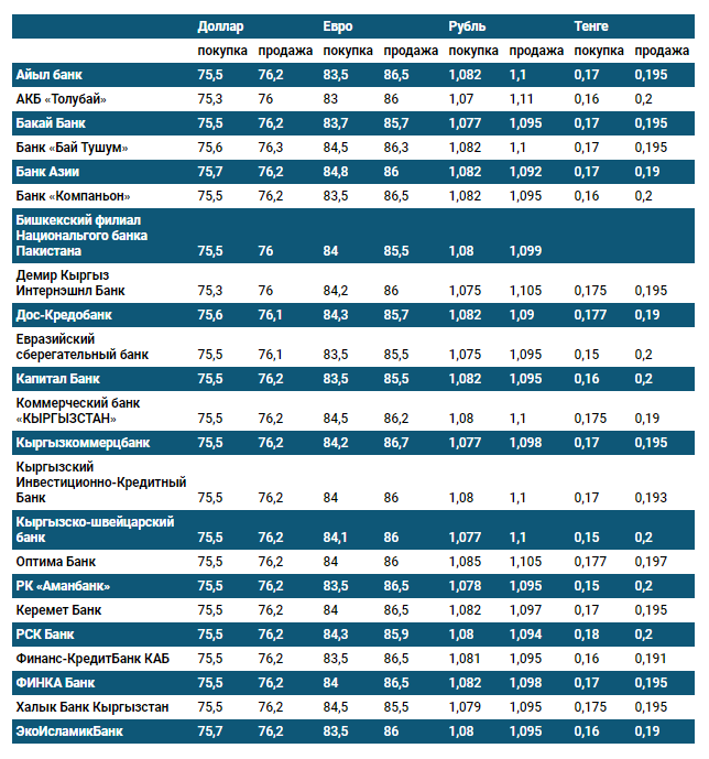Курс доллара в коммерческих банках Кыргызстана на 29 июня