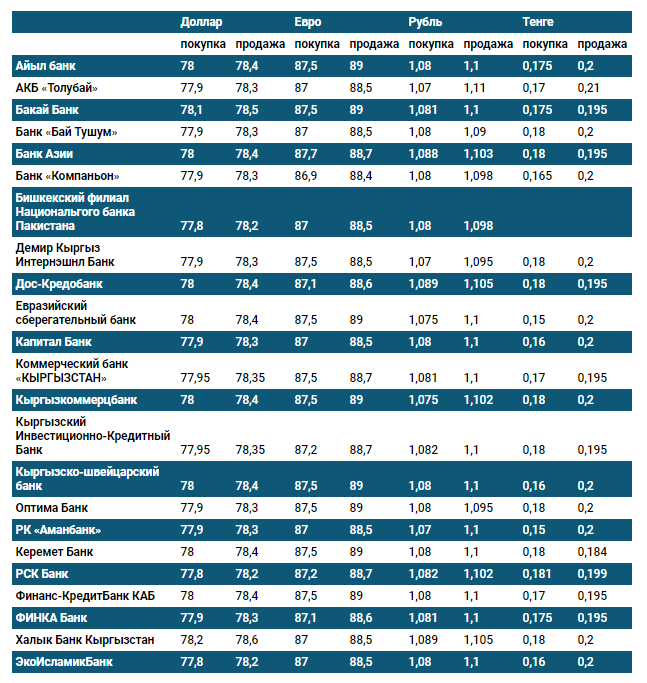 Курс доллара в коммерческих банках Кыргызстана на 8 июля