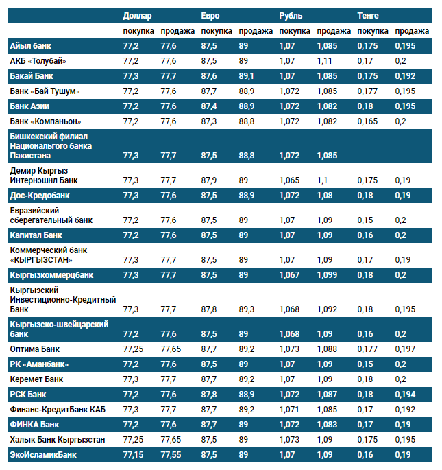 Курс доллара в коммерческих банках Кыргызстана на 20 июля