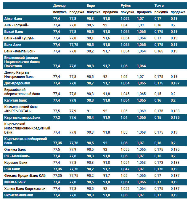 Курс доллара в коммерческих банках Кыргызстана на 11 августа