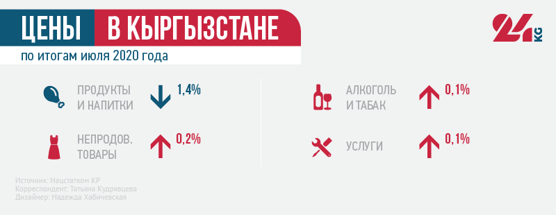 Однако в Нацстаткоме отмечают, что с начала 2020 года цены в целом по республике выросли на 2,5 процента. Пищевые продукты и безалкогольные напитки подорожали на 4,9 процента, алкогольные напитки и табачные изделия — на 5,5 процента. Цены на непродовольственные товары, напротив, снизились на 0,8 процента, а тарифы на услуги оставались на уровне декабря 2019 года.