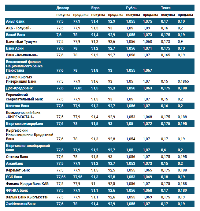 Курс доллара в коммерческих банках Кыргызстана на 20 августа