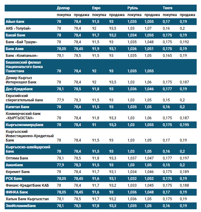 Курс доллара в коммерческих банках Кыргызстана на 26 августа