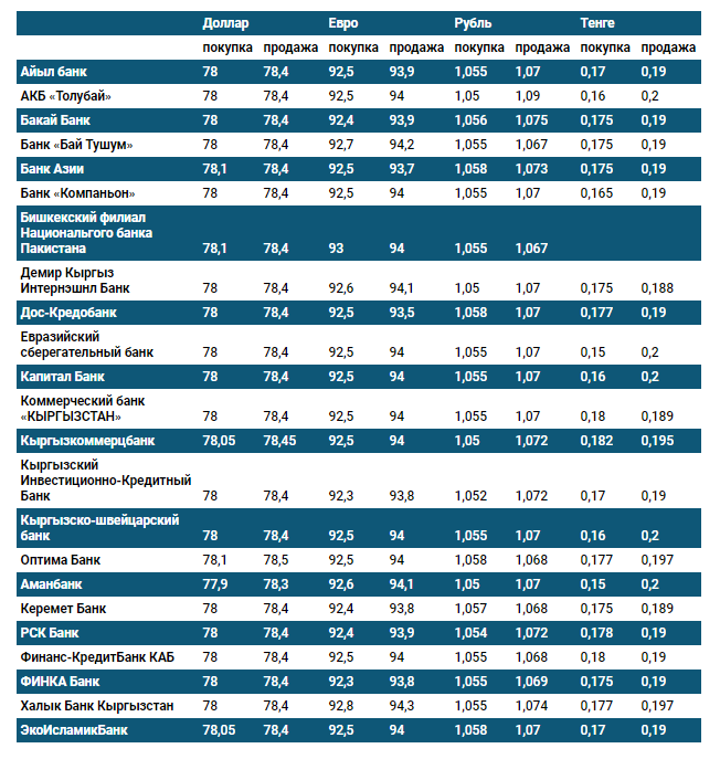 Курс доллара в коммерческих банках Кыргызстана на 2 сентября