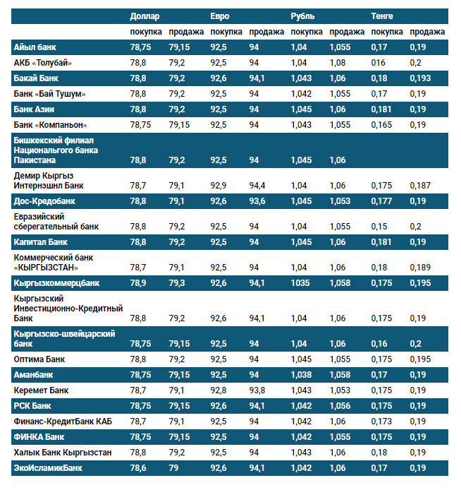 Курс доллара в коммерческих банках Кыргызстана на 10 сентября