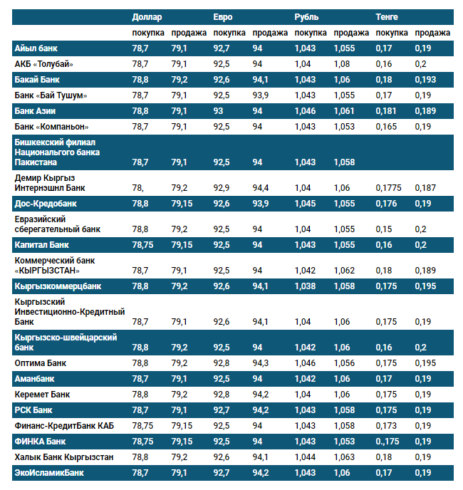 Курс доллара в коммерческих банках Кыргызстана на 11 сентября