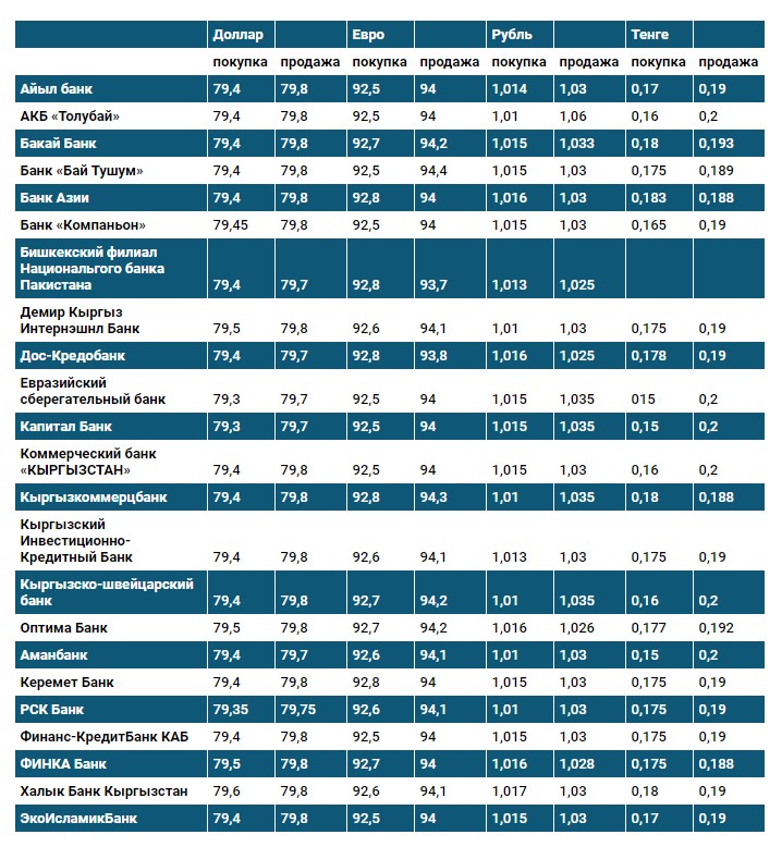 Курс доллара в коммерческих банках Кыргызстана на 5 октября