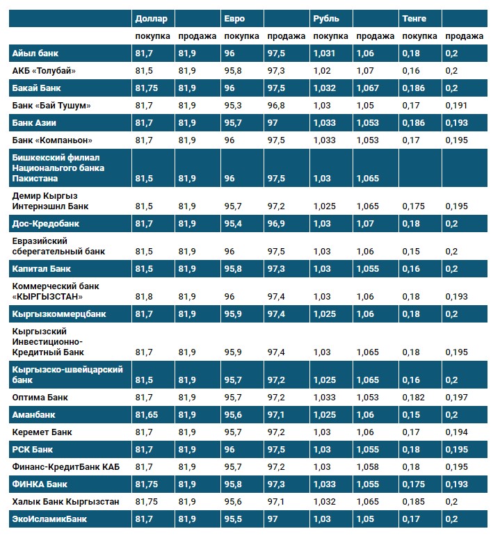Курс доллара в коммерческих банках Кыргызстана на 29 октября