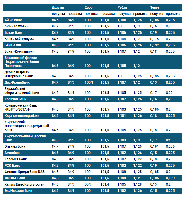 Курс доллара в коммерческих банках Кыргызстана на 23 ноября