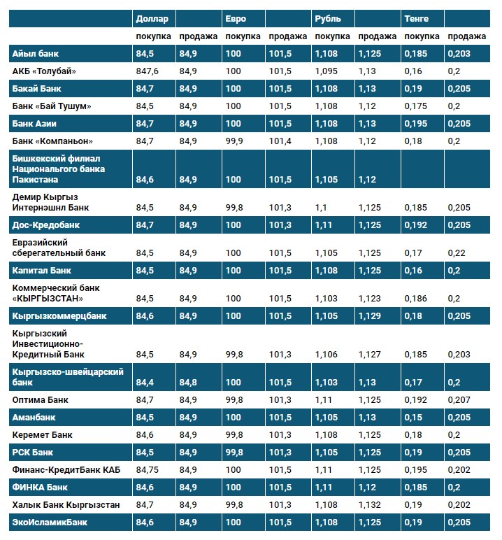 Курс доллара в коммерческих банках Кыргызстана на 24 ноября