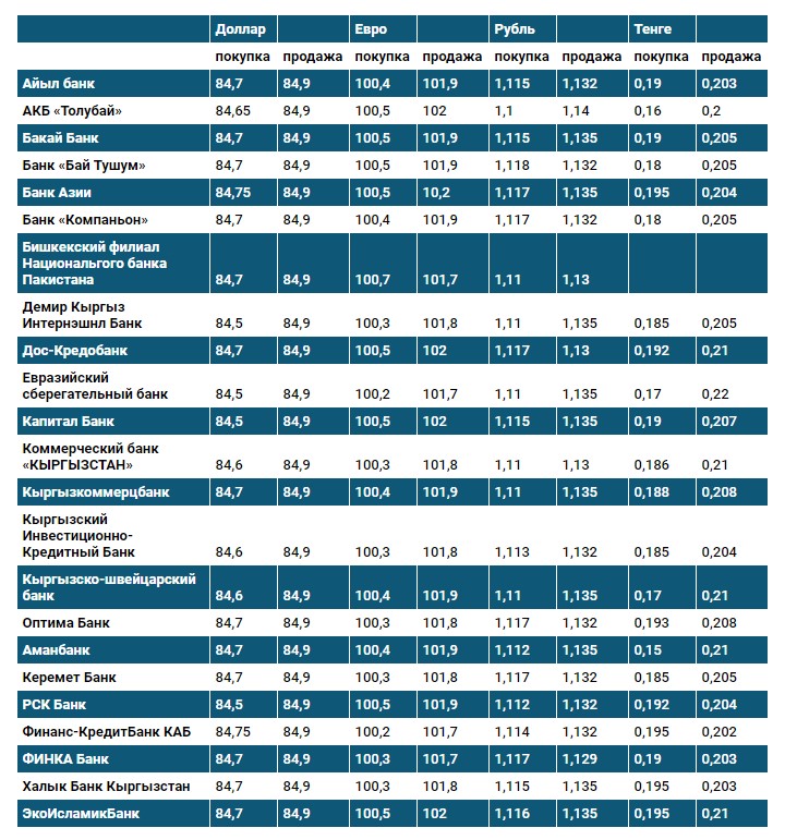 Курс доллара в коммерческих банках Кыргызстана на 27 ноября