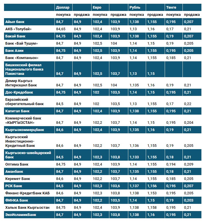 Курс доллара в коммерческих банках Кыргызстана на 7 декабря