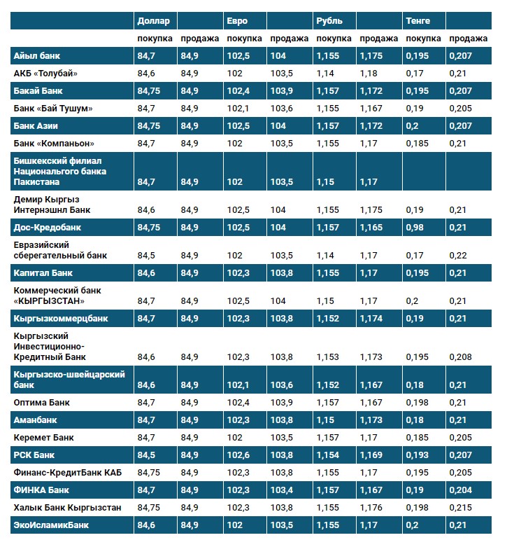 Курс доллара в коммерческих банках Кыргызстана на 11 декабря