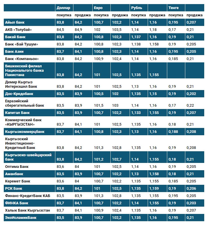 Курс доллара в коммерческих банках Кыргызстана на 14 декабря