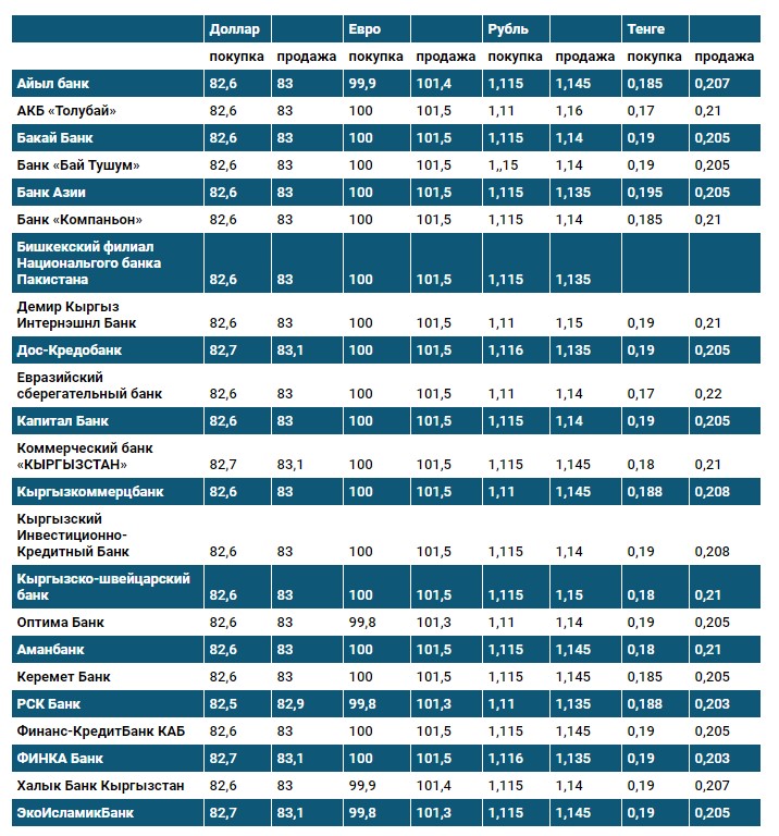 Курс доллара в коммерческих банках Кыргызстана на 15 декабря