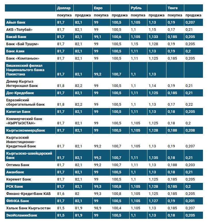 Курс доллара в коммерческих банках Кыргызстана на 17 декабря