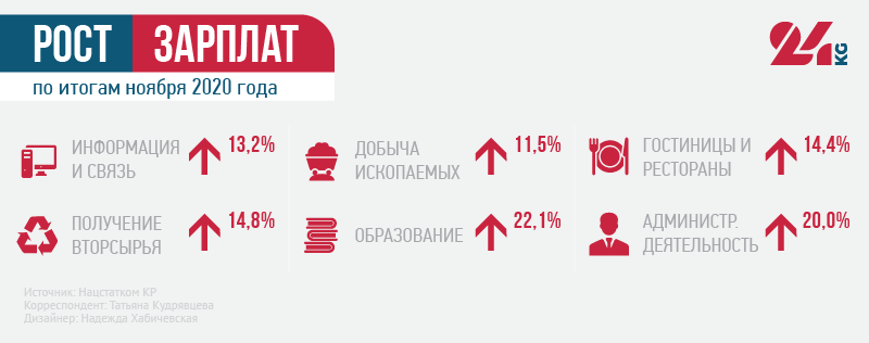 По данным Нацстаткома, средняя заработная плата в республике по итогам октября составила 17 тысяч 990 сомов.