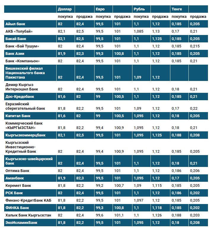 Курс доллара в коммерческих банках Кыргызстана на 25 декабря