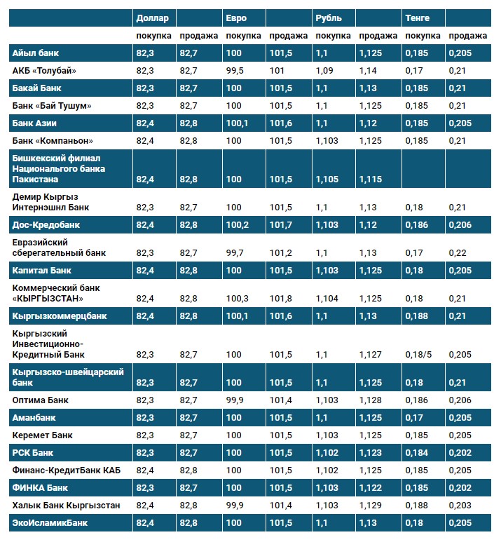 Курс доллара в коммерческих банках Кыргызстана на 28 декабря