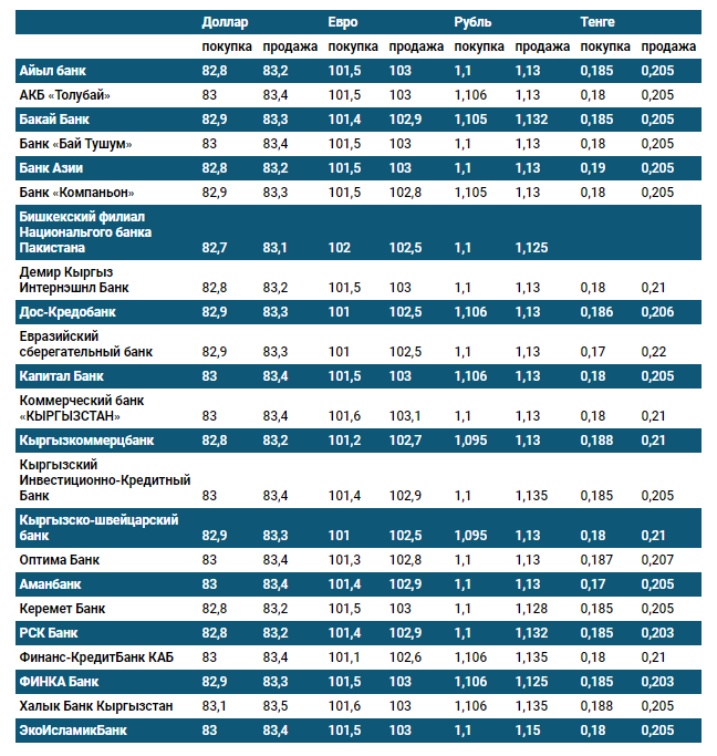 Курс доллара в коммерческих банках Кыргызстана на 31 декабря