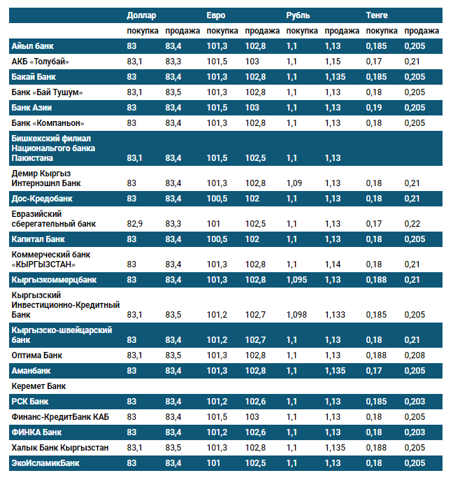 Курс доллара в коммерческих банках Кыргызстана на 4 января