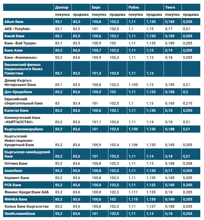 Курс доллара в коммерческих банках Кыргызстана на 11 января