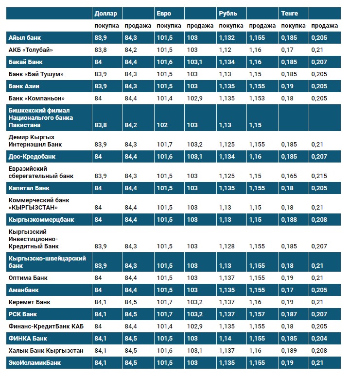 Курс доллара в коммерческих банках Кыргызстана на 14 января