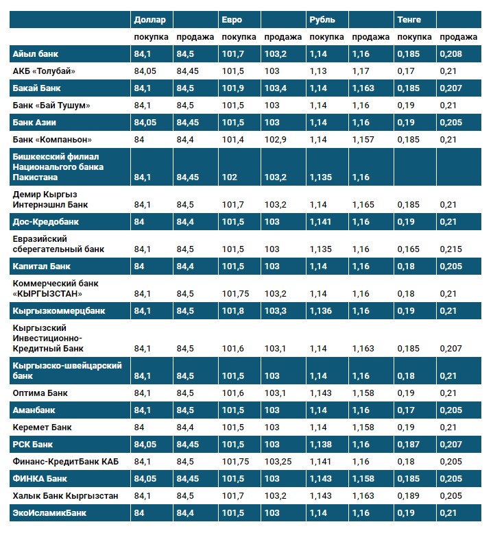 Курс доллара в коммерческих банках Кыргызстана на 15 января