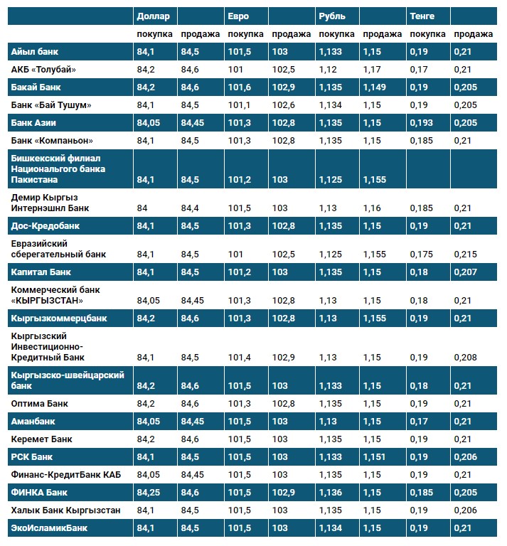 Курс доллара в коммерческих банках Кыргызстана на 10 февраля