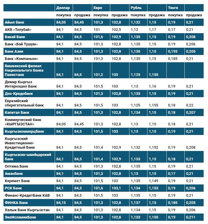 Курс доллара в коммерческих банках Кыргызстана на 11 февраля