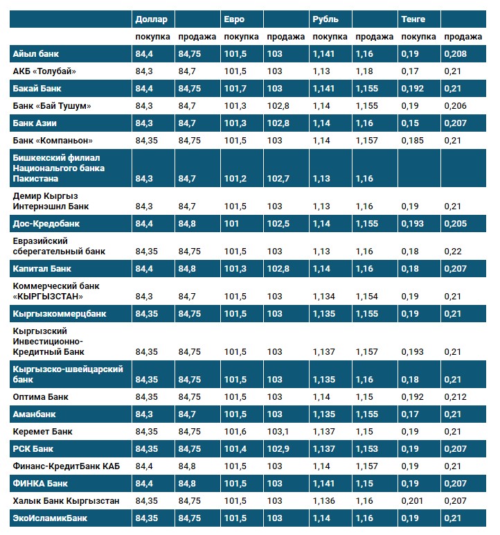 Курс доллара в коммерческих банках Кыргызстана на 19 февраля