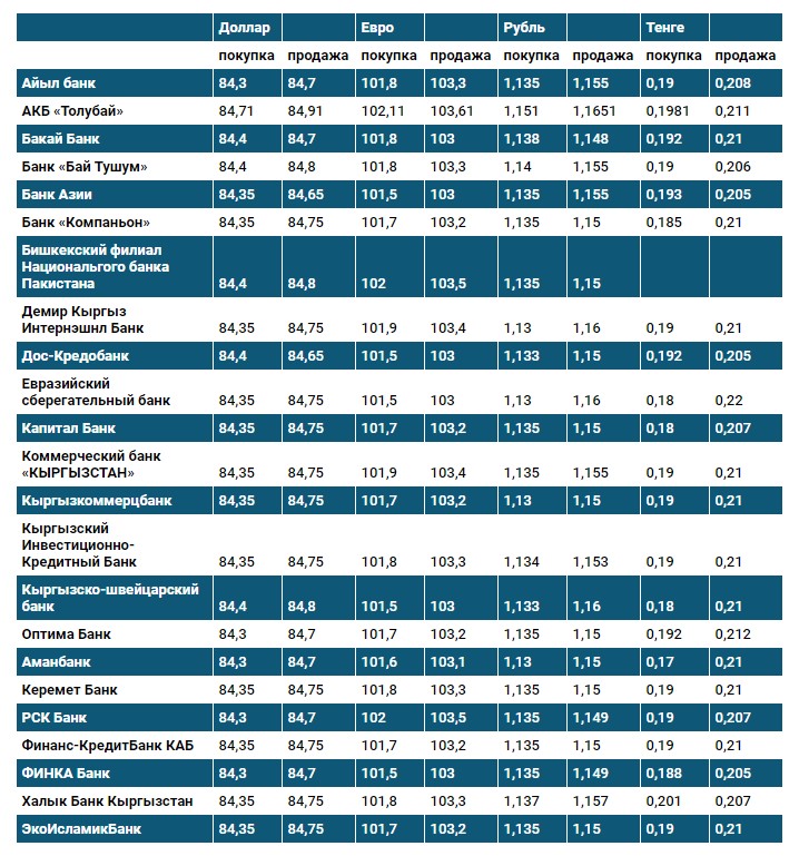 Курс доллара в коммерческих банках Кыргызстана на 22 февраля
