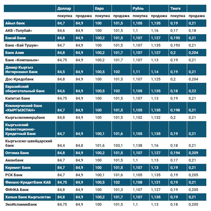 Курс доллара в коммерческих банках Кыргызстана на 24 марта