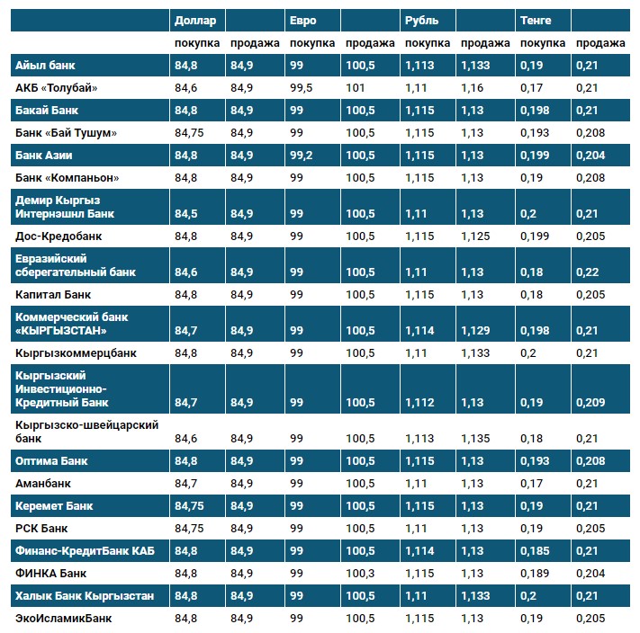 Курс доллара в коммерческих банках Кыргызстана на 31 марта