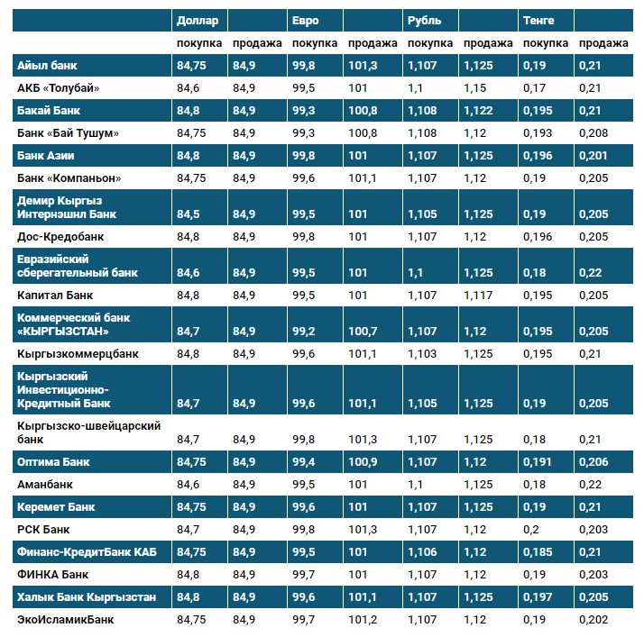 Курс доллара в коммерческих банках Кыргызстана на 6 апреля
