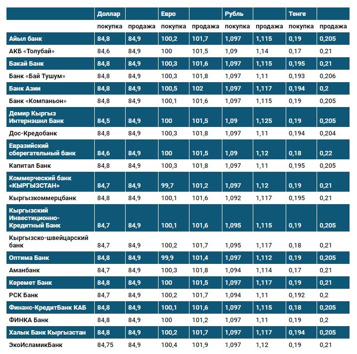 Курс доллара в коммерческих банках Кыргызстана на 8 апреля