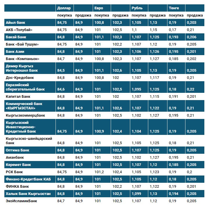 Курс доллара в коммерческих банках Кыргызстана на 16 апреля