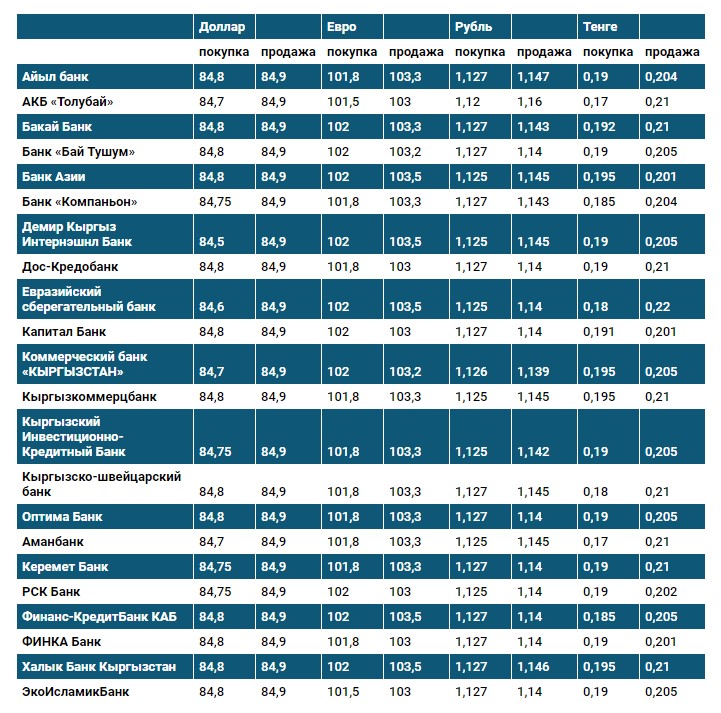 Курс доллара в коммерческих банках Кыргызстана на 27 апреля