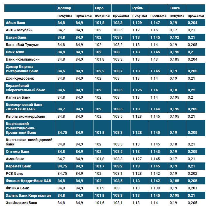 Курс доллара в коммерческих банках Кыргызстана на 28 апреля