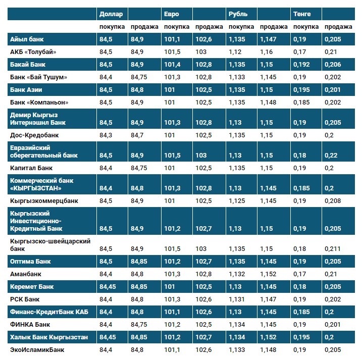 Курс доллара в коммерческих банках Кыргызстана на 7 мая