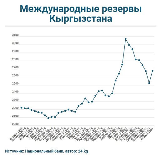 По итогам апреля 2021 года резервы достигли $2 миллиардов 675,58 миллиона. За месяц они увеличились на $152,49 миллиона. По сравнению с августом 2020-го показатель снизился на $395,6 миллиона. А вот по сравнению с апрелем 2020 года они, наоборот, выросли на $277,99 миллиона.