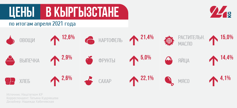 С начала года цены в Кыргызстане выросли на 4 процента. На алкогольные напитки и табачные изделия — на 6,2 процента, пищевые продукты и безалкогольные напитки — на 5,5 процента, непродовольственные товары — на 2,6 процента, тарифы на услуги, оказываемые населению, — на 0,9 процента.