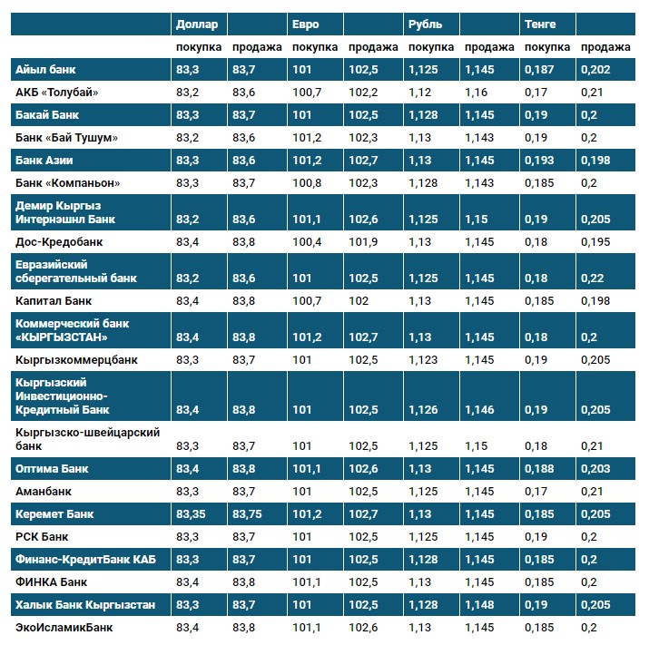 Курс доллара в коммерческих банках Кыргызстана на 27 мая