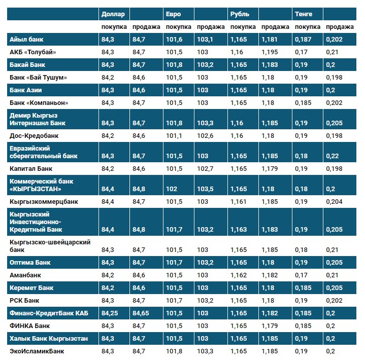 Курс доллара в коммерческих банках Кыргызстана на 15 июня