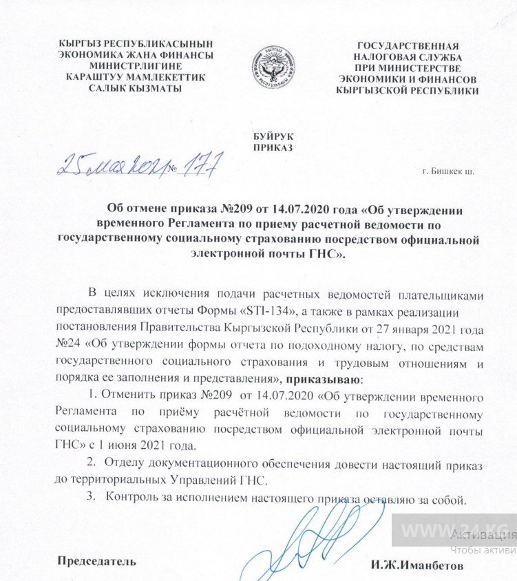 В пресс-службе ГНС 24.kg подтвердили, что приказом ведомства временный регламент отменен. Это сделано после того, как постановлением правительства объединены формы отчетов по подоходному налогу, средствам государственного социального страхования и трудовым отношениям.«Пока регламент отменен, но это временно. Возможно, в ближайшее время будет новое решение, которое упростит работу бизнеса и сдачу отчетов», — рассказали в ГНС.